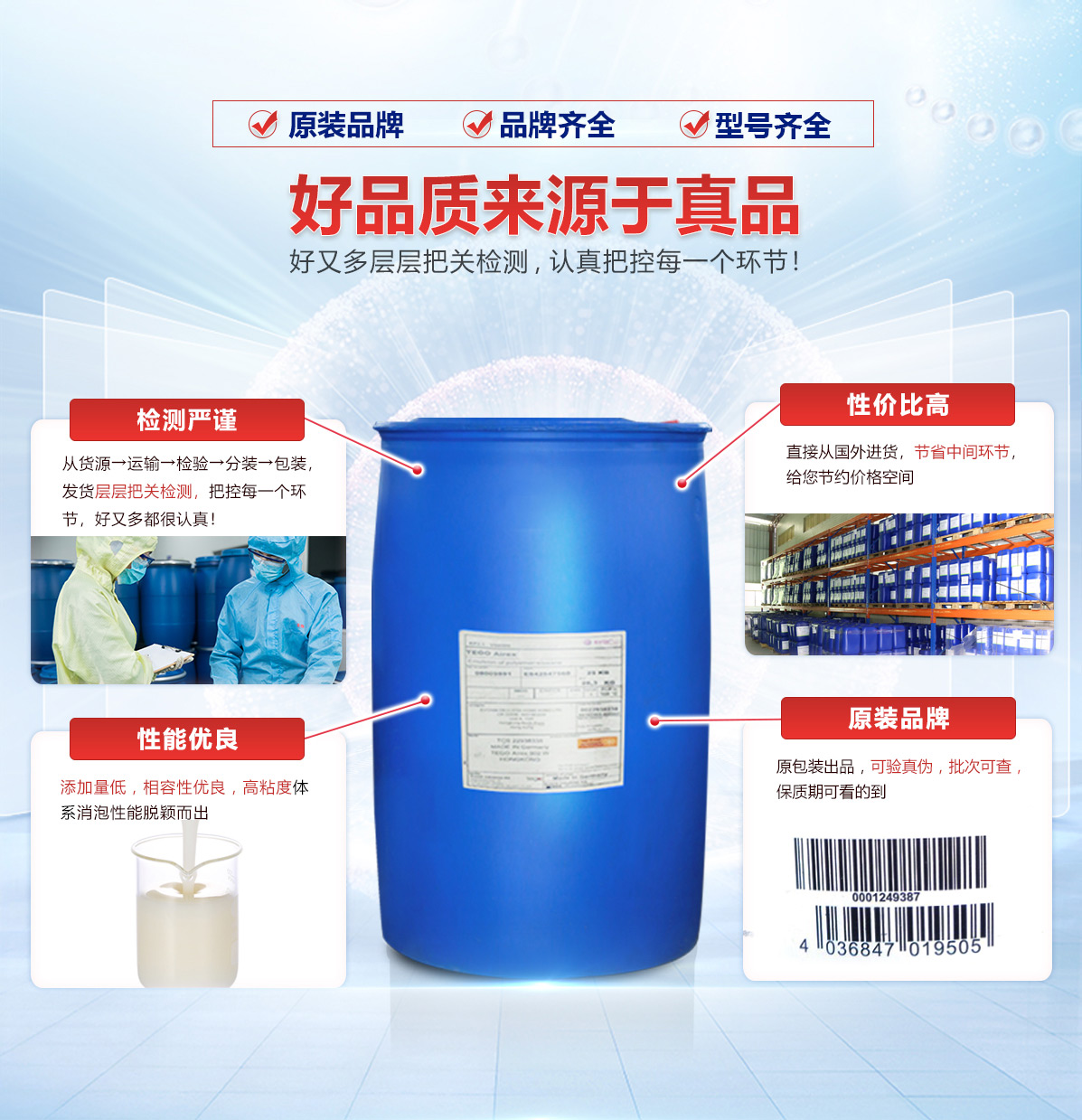 | 潤滑油用消泡劑 | 屬于低粘度的消泡乳液,具有良好的持久消泡性。具有優異的剪切和稀釋穩定性 | 美國 | 20KG/200KG | 24個月 |