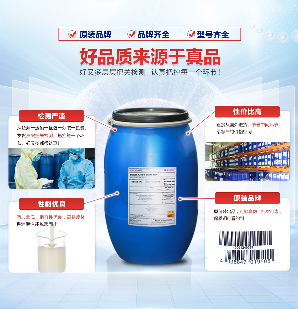 | 金屬加工液消泡劑 | 其稀釋液有很好的堿和電解質(zhì)穩(wěn)定性,甚至在高溫下也很穩(wěn)定。 | 德國 | 30KG/60KG桶裝 | 24個月 |